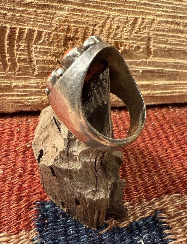 Heavy silver coral cabochon ring. 7 cabochons set in a fine bezel.